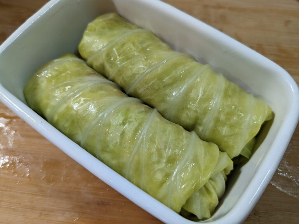 ちょうど余った具とキャベツはロールキャベツ2個に。
