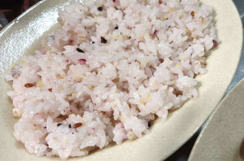 ちょうど雑穀の黒米が果汁効果で全体がピンクに!