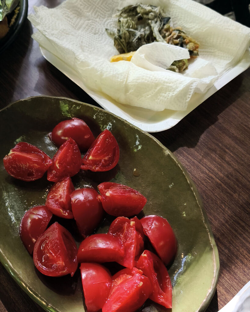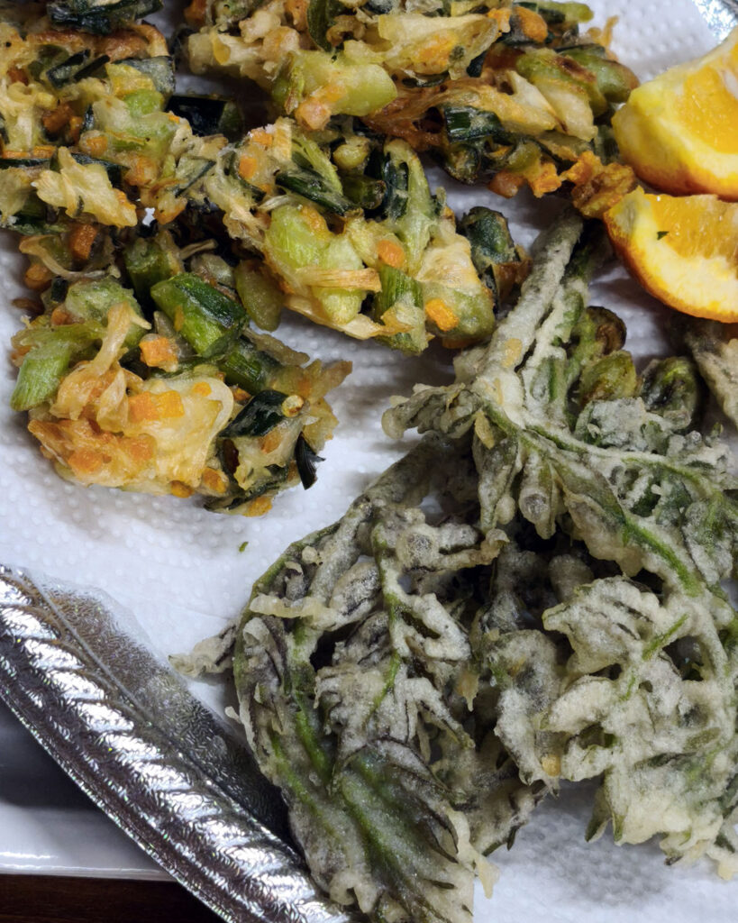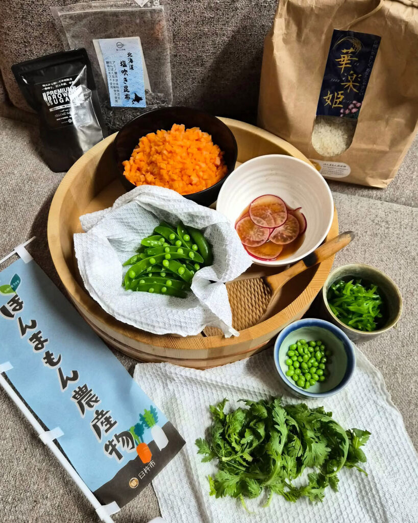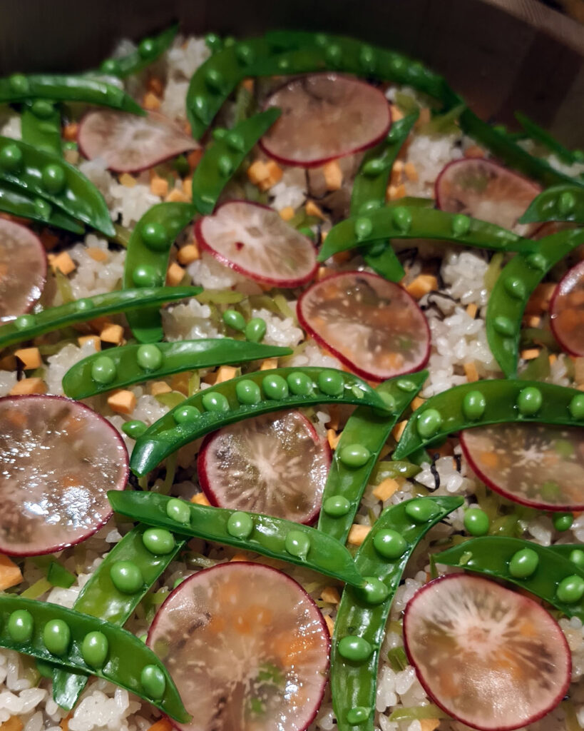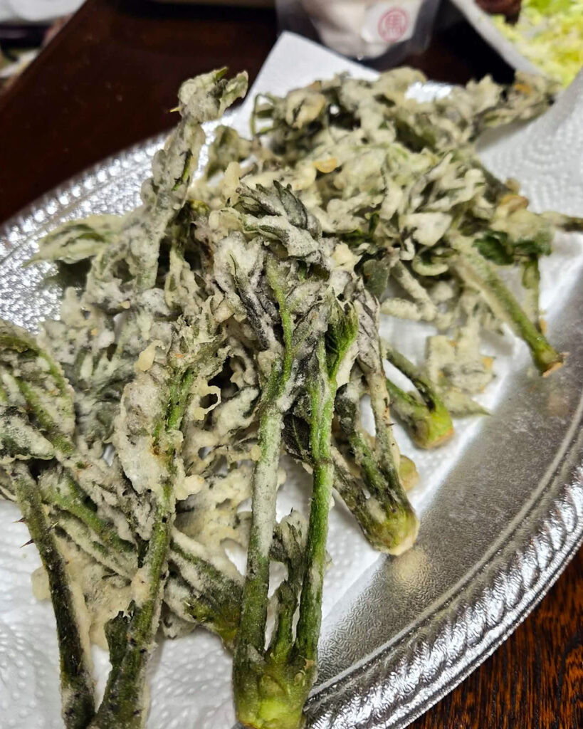 千茱萸さんの臼杵ほんまもん野菜ちらし寿司、酔っぱらった後のまー君の山菜天ぷらも美味しかった~!