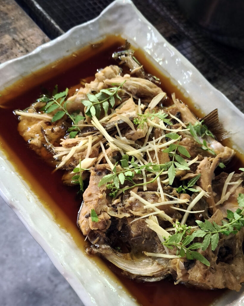 朝食は北京ダックガラでとった出汁x芹のビーフンスープ、あと鯛アラ煮つけ美味しかった~!
